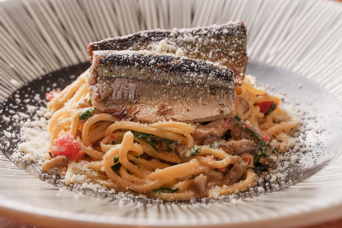 メニュー:サンマとキノコの豆乳米粉クリームソース(税込 1,180円)